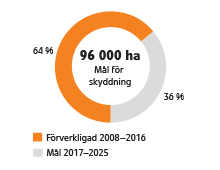 | Skydd som genomförts med stöd av naturvårdslagen 2008–2016 och det övergripande målet för 2025 |