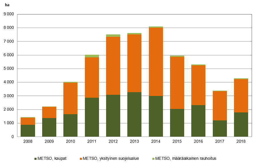 Ympäristöministeriön hallinnonalalla suojelupäätökset tehdään ELY-keskuksissa, jotka saavuttivat viime vuonna METSO-tavoitteensa lähes täysimääräisesti. Uusia alueita suojeltiin koko maassa yhteensä 4 294 hehtaaria (97 % tavoitteesta), ja kohteiden keskikoko oli noin 10 hehtaaria. Parhaiten METSO-ohjelman toteutus eteni Hämeen ELY-keskuksen alueella, jossa suojeltiin yhteensä 605 hehtaaria uusia kohteita.