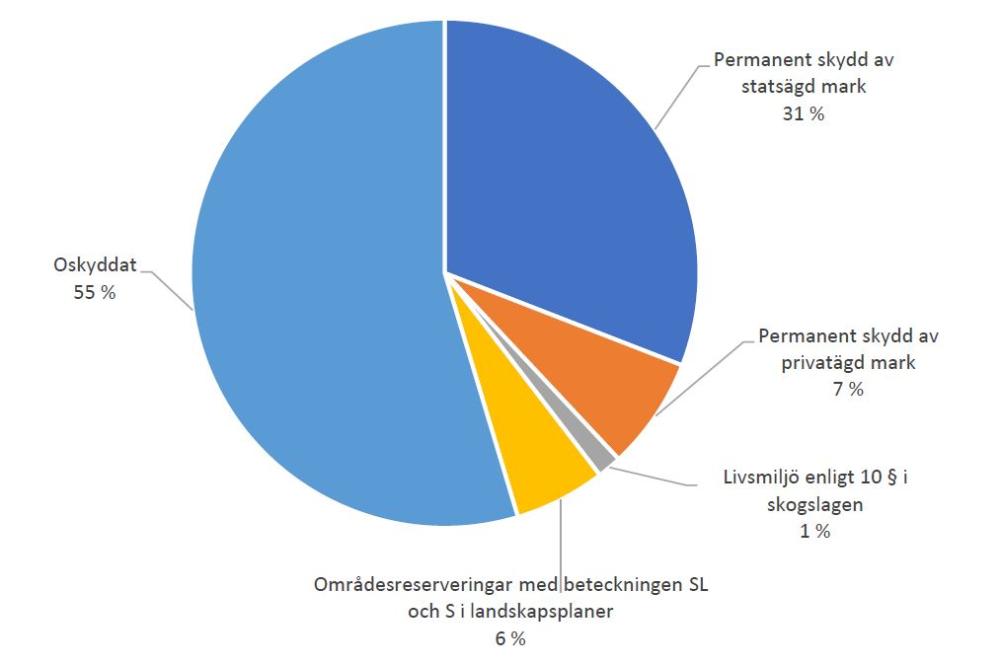 Kompletteringsförslaget omfattar cirka 36 000 hektar statsägd mark, som skyddades med stöd av lag eller genom Forststyrelsens eget beslut åren 2015–2016. Av de cirka 81 000 hektar som ägs av andra har cirka 8 300 hektar skyddats permanent med stöd av naturvårdslagen. Tidsbegränsade miljöstödsavtal enligt lagen om finansiering av hållbart skogsbruk har ingåtts för en areal på cirka 500 hektar. Cirka 63 700 hektar myrar som ingår i förslaget till komplettering av myrskyddet är helt oskyddade.