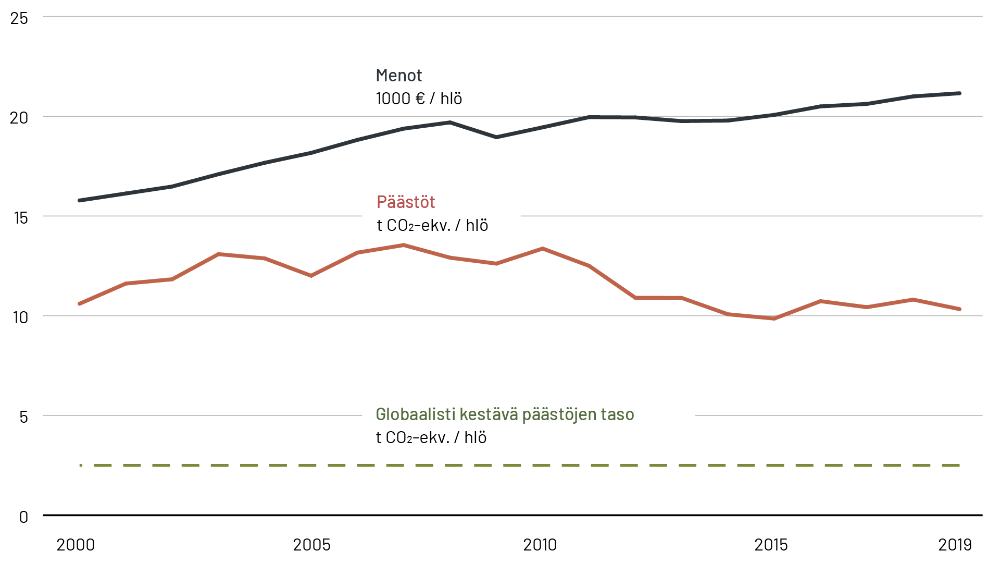 Kansallisen ilmastolain mukaisesti Suomen tavoitteena on olla hiilineutraali vuonna 2035. Tällöin Suomen päästöjen ja nielujen tulee olla tasapainossa, eli kasvihuonekaasupäästöt ovat enintään yhtä suuret kuin poistumat. Hiilineutraaliustavoitteen saavuttaminen vaatii merkittäviä lisätoimia. Nieluja tulee vahvistaa ja päästöjä vähentää erityisesti maankäyttösektorilla, jossa päästökehitys on tällä hetkellä kasvava. Ilmastolaki sisältää myös päästövähennystavoitteet taakanjako- ja päästökauppasektorille vuosille 2030, 2040 ja 2050. Ilmastovuosikertomuksessa tarkastellaan tavoitteiden saavuttamista 15 vuoden aikajänteellä. Vuoteen 2030 mennessä päästökauppa- ja taakanjakosektorin yhteenlaskettuja päästöjä tulee vähentää 60 prosenttia ja vuoteen 2040 mennessä 80 prosenttia vuoden 1990 tasoon verrattuna.