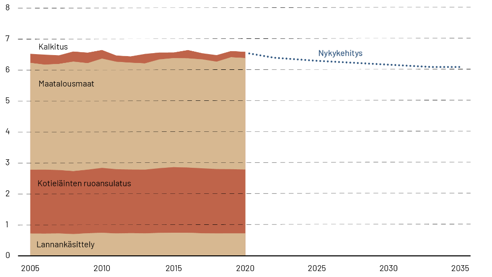 Maatalouden päästöt pysyivät lähes samalla tasolla. Maatalous on taakanjakosektorin toiseksi suurin päästölähde liikenteen jälkeen.