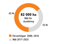 | Skydd som genomförts med stöd av naturvårdslagen 2008–2016 och det övergripande målet för 2025 |