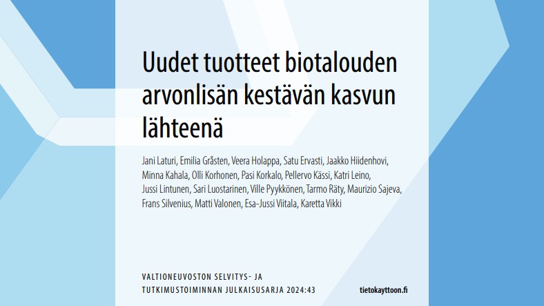 Rapporten Uudet tuotteet biotalouden arvonlisän kestävän kasvun lähteenä (Nya produkter som källa till högre mervärde av bioekonomin på ett hållbart sätt) är slutrapporten för projektet Hållbart ökande mervärdet av bioekonomin i Finland (BAKKES). Detta projekt för statsrådets utrednings- och forskningsverksamhet genomfördes av Pellervo ekonomiska forskningsinstitut PTT och Naturresursinstitutet Luke.