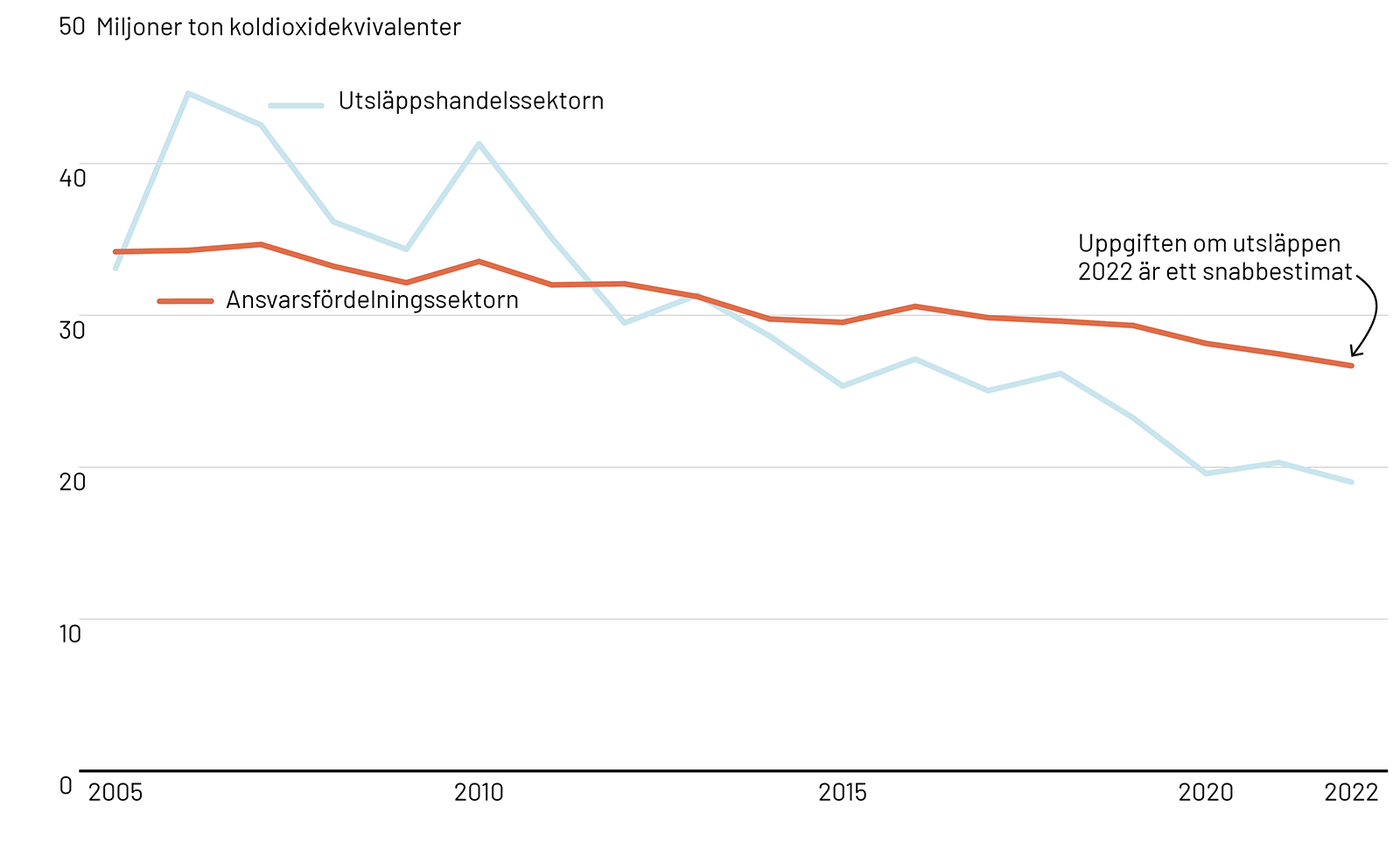 - Inom utsläppshandelssektorn minskade utsläppen med 14 procent.