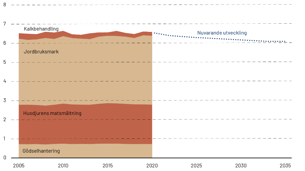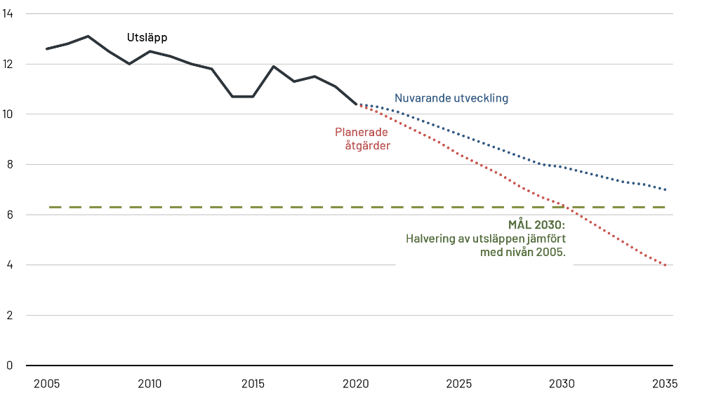 - Nettoutsläppen inom markanvändningssektorn var +13 Mt CO2-ekvivalenter.